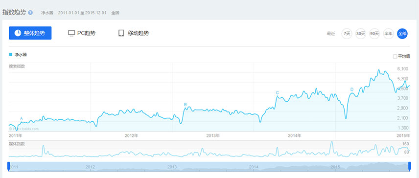 凈水器行業(yè)平均每年增長幅度45%,目前年銷售不到200億,預計在2020年銷售額超過一千億,最終形成超過5000多億的巨大消費市場。與家電、廚衛(wèi)、建材、裝修、五金、桶裝水等行業(yè)接軌的凈水器,市場將越來越大。農村凈水器市場消費市場規(guī)模將造就一批水家電新貴。每年千萬套以上保障房建設將刷新凈水器市場增長點,形成新的市場規(guī)模。